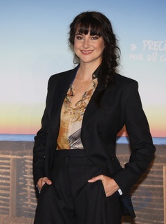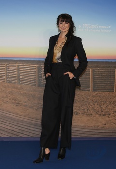 Shailene Woodley w czarnym garniturze na photocall A la derive na Festiwalu w Deauville