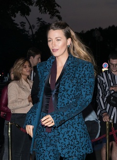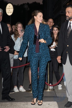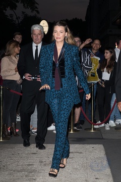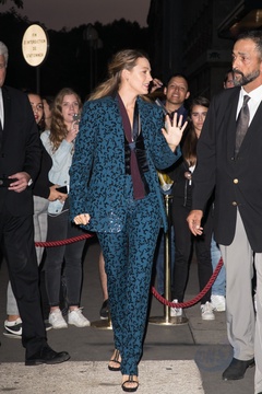 Blake Lively we wzorzystym garniturze w drodze na premiere Simple Favor