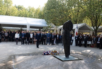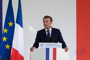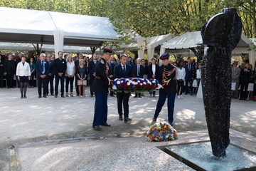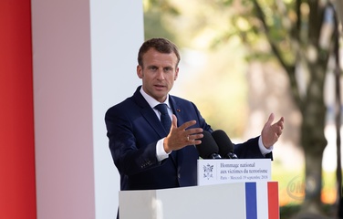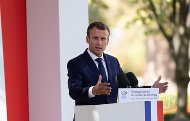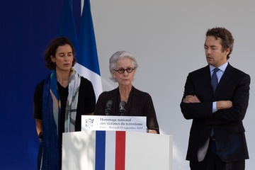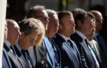 Prezydent Francji i ministrowie podczas narodowej ceremonii dla ofiar terroryzmu