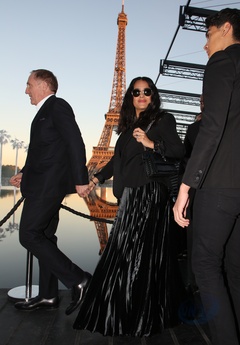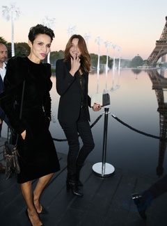Znani przy Wiezy Eiffla na pokazie Saint Laurent