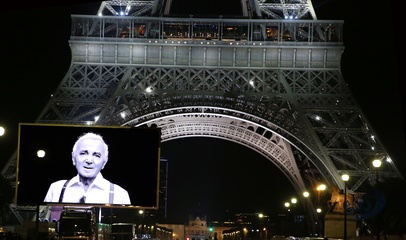 Charles Aznavour - wspomnienie przy Wiezy Eiffla