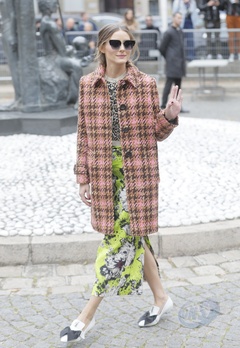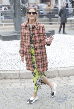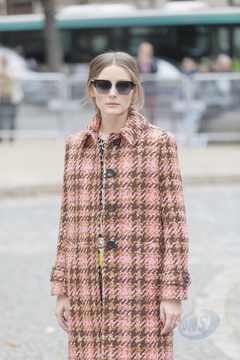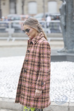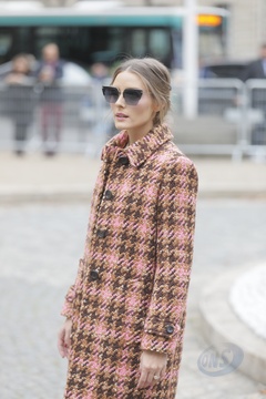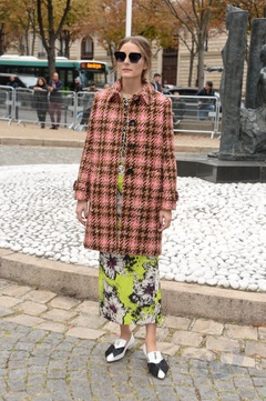 Olivia Palermo w jesiennym plaszczyku przed pokazem Miu Miu