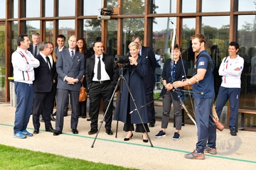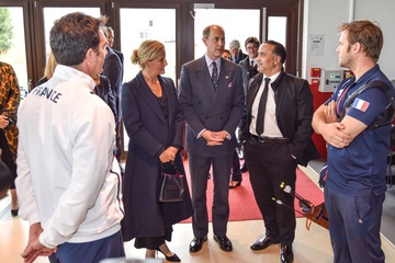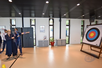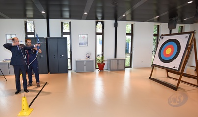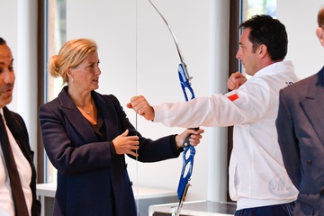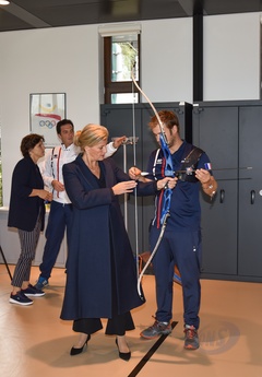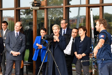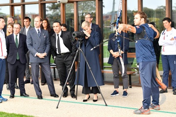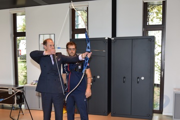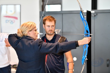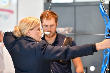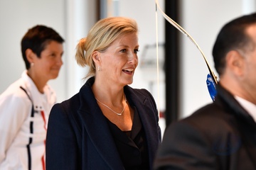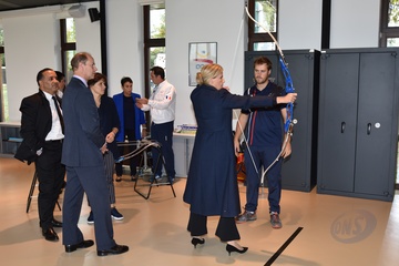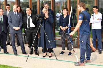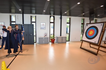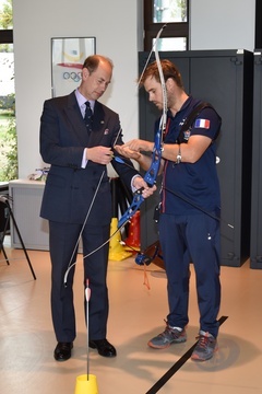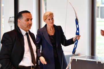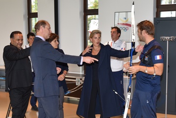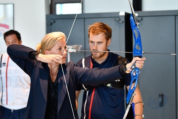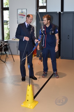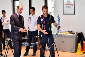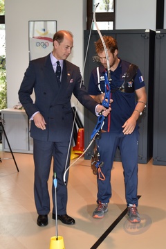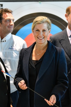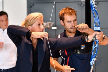 Ksiaze Edward z zona Sophie ucza sie strzelac z luku
