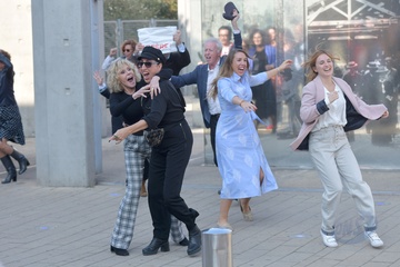 Jane Fonda w spodniach w kratke szaleje na 10 Festival Lumiere w Lyon