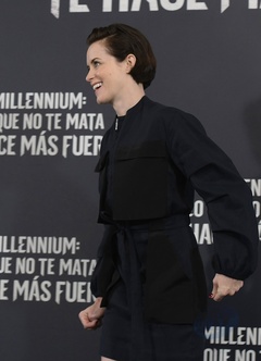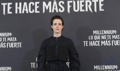 Claire Foy i Federico Alvarez na photocall The Girl in the Spiders Web, Madryt