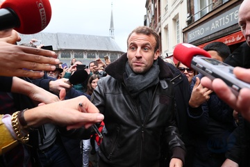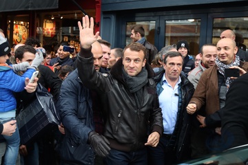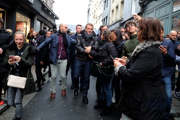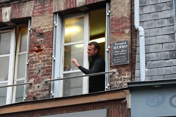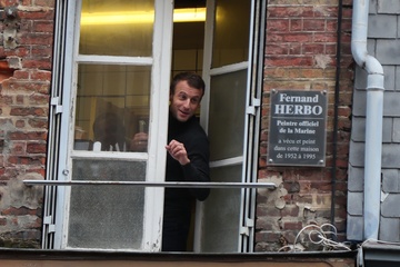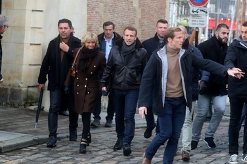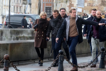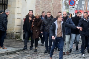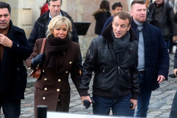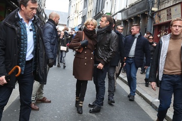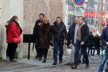 Brigitte Macron i Emmanuel Macron podczas wizyty w Honfleur