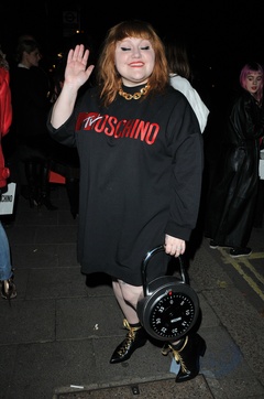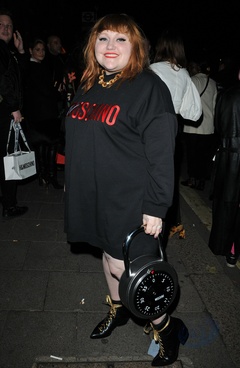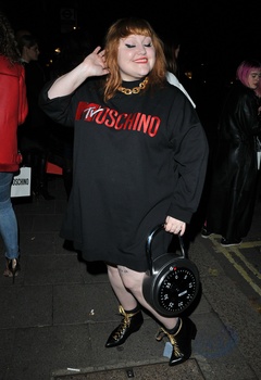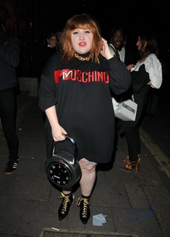 Beth Ditto w sukience Moschino i z dziwna torebka