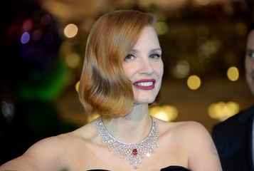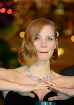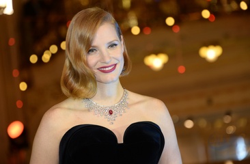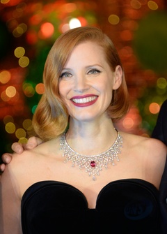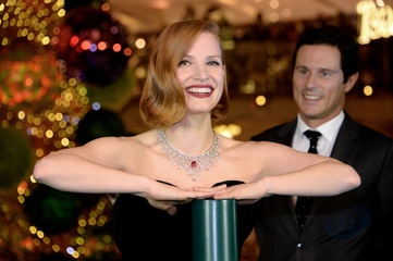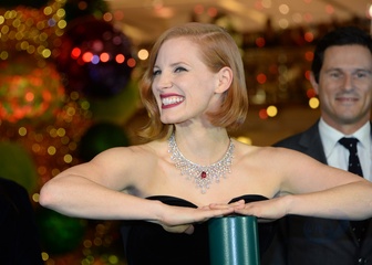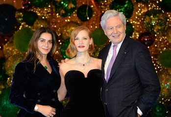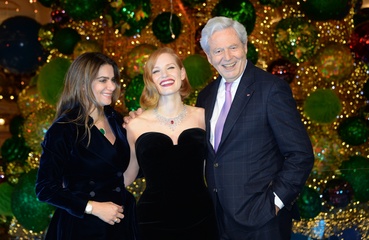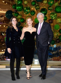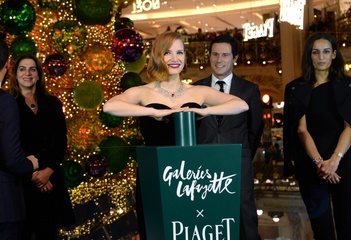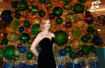 Jessica Chastein na choinkowej inauguracji w Galeries Lafayette