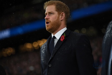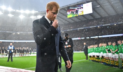 Ksiaze Harry moknie na meczu rugby Anglia - Nowa Zelandia