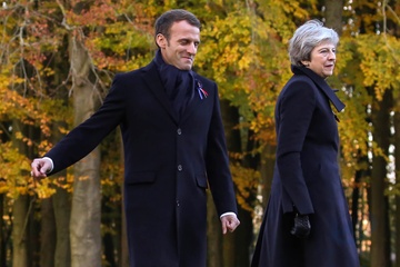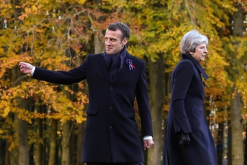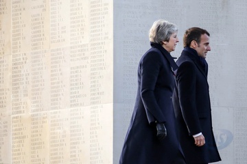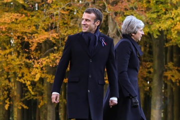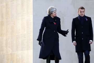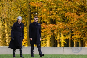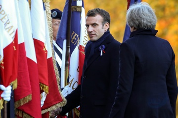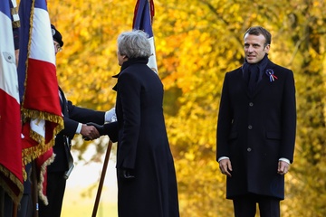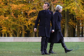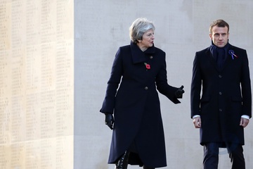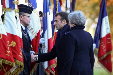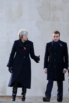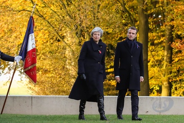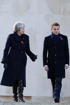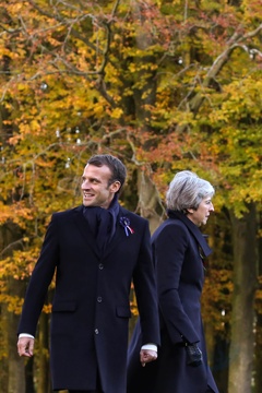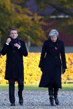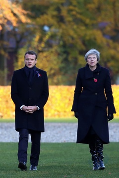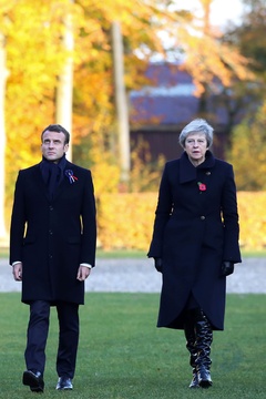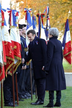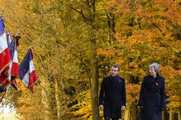 Emmanuel Macron i Theresa May w rocznice zakonczenia I wojny swiatowej
