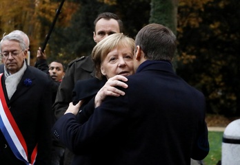 Emmanuel Macron, Angela Merkel - 100. rocznica zakonczenia I wojny swiatowej