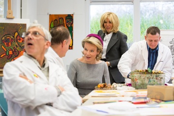 Brigitte Macron i krolowa Matylda podczas spotkania w Belgii