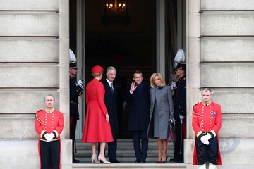 Emmanuel Macron, Brigitte Macron, krol Filip, krolowa Marylda, Charles Michel