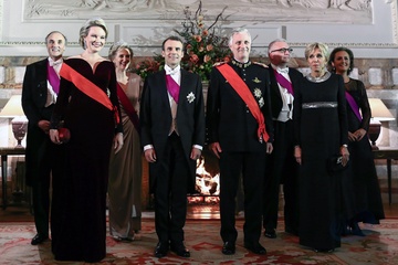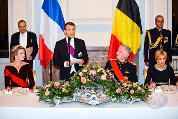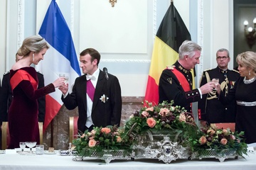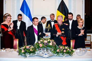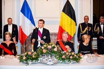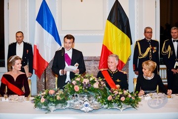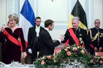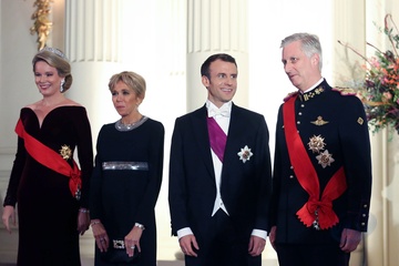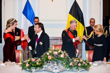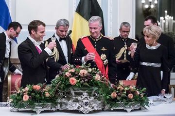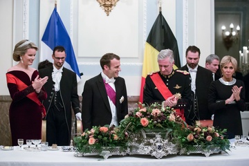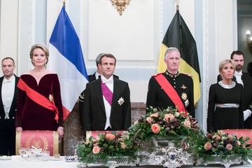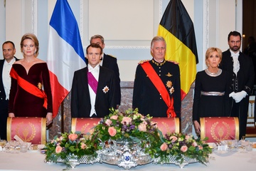 Macronowie na bankiecie u pary krolewskiej Belgii