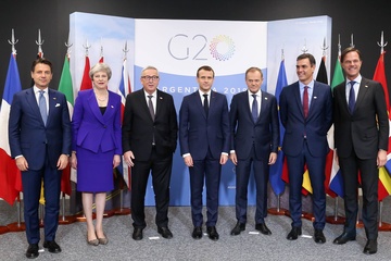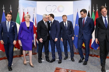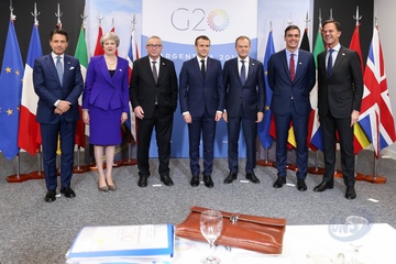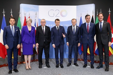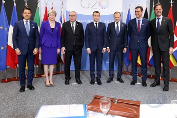 Giuseppe Conte, Theresa May, , Jean-Claude Juncker, Emmanuel Macron, Donald Tusk, Mark Rutte