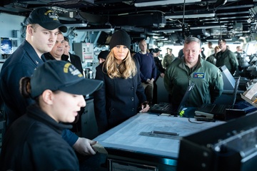 Melania Trump podczas wizyty na amerykanskim lotniskowcu