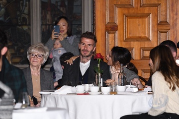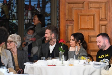 Victoria i David Beckham z mama na pokazie mody dla mezczyzn