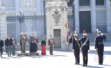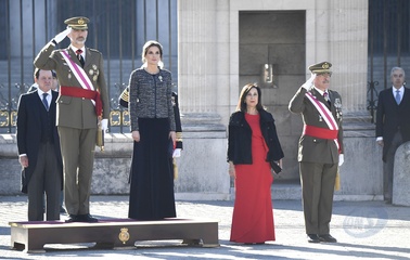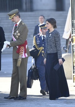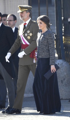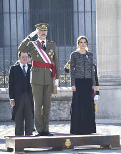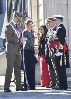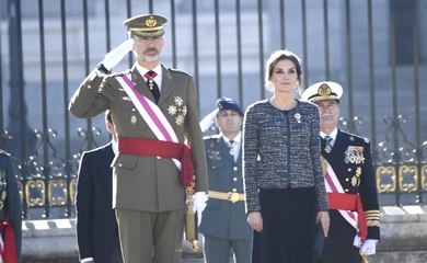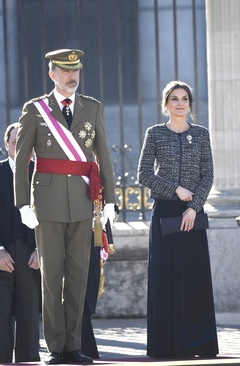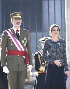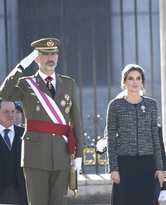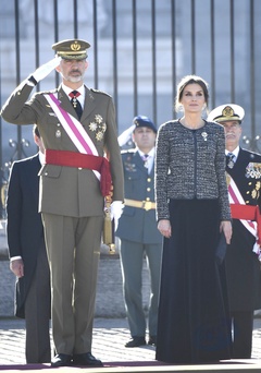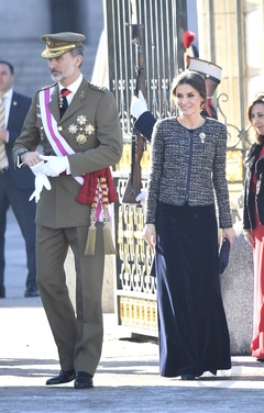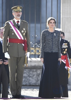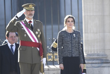Krolowa Letizia i krol Filip podczas tradycyjnej parady wojskowej