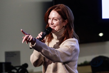 Julianne Moore bez makijazu i w golfie na 9th Annual Peace Week Town Hall