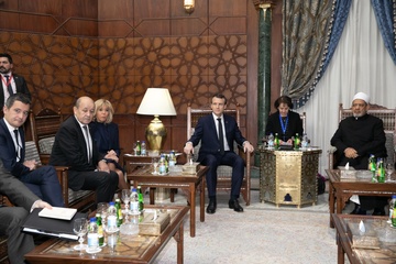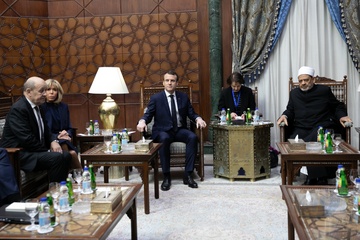 Emmanuel Macron z zona Brigitte, Jean-Yves Le Drian, Ahmed Al-Tayeb