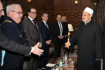 Brigitte Macron, Jean Yves le Drian, Gerald Darmanin, Ahmed Al-Tayeb