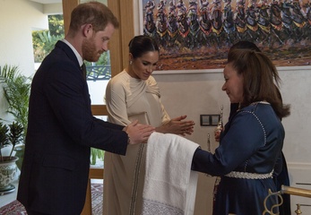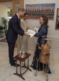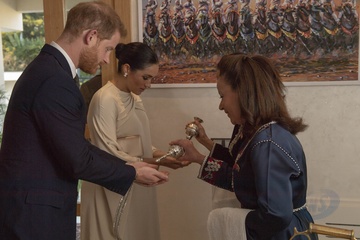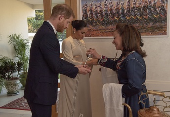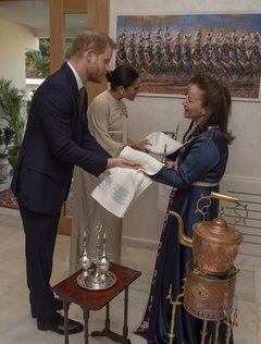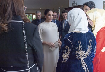 Ksiezna Meghan i ksiaze Harry na przyjeciu w ambasadzie w Maroku