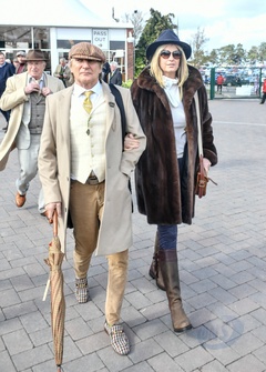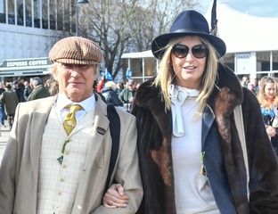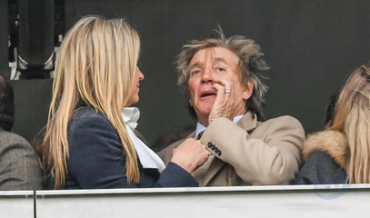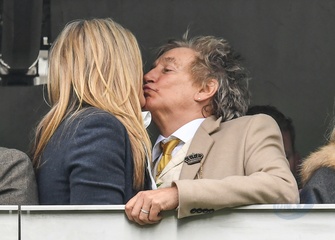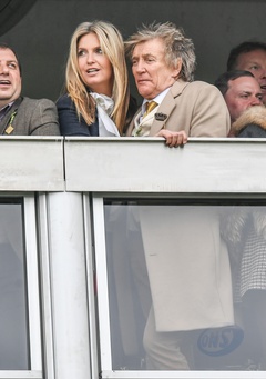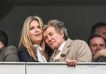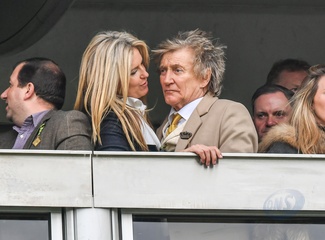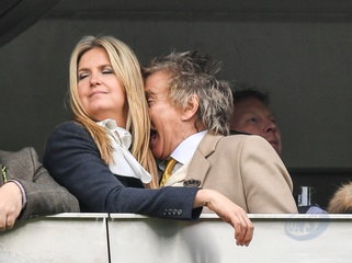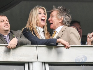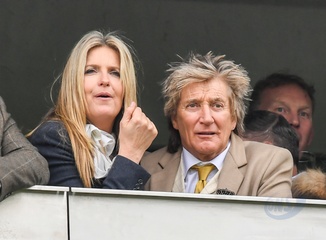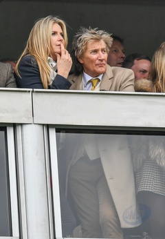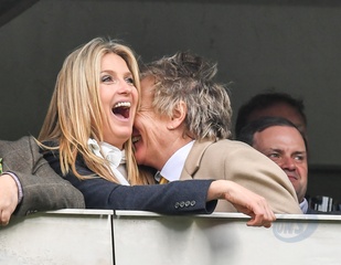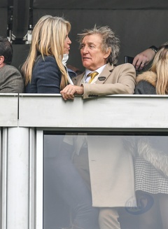 Rod Stewart z zona Penny Lancaster na Cheltenham Racecourse