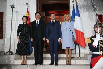 Emmanuel Macron, Brigitte Macron,, Xi Jinping, Peng Liyuan