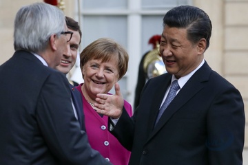 Emmanuel Macron, Angela Merkel, Jean-Claude Juncker, Xi Jinping