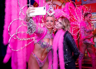 excl. Cara Delevingne pozuje z tancerkami Moulin Rouge