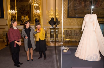 Ksiezniczka Eugenia oglada swoja suknie slubna na wystawie