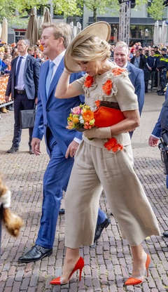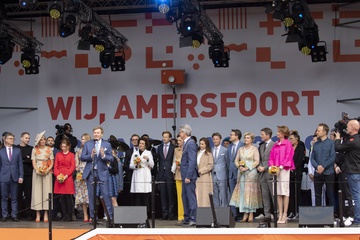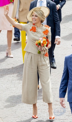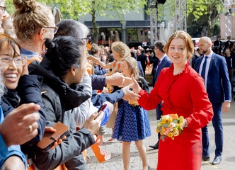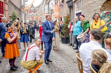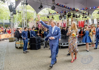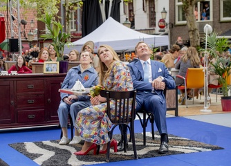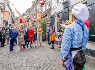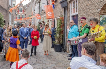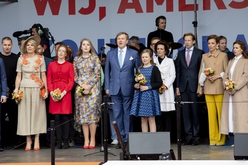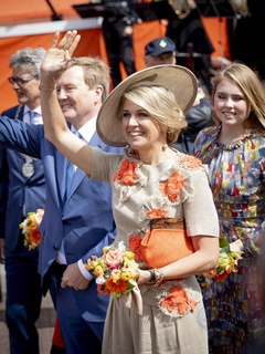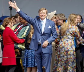 Holenderski Krol z zona i corkami podczas Kings Day Celebrations
