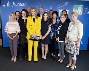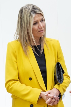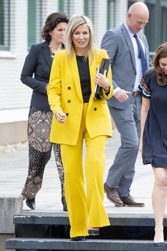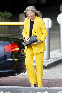 Krolowa Maxima w zoltym garniturze