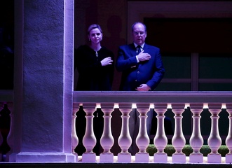 Ksiezna Charlene i ksiaze Albert podczas Procesji