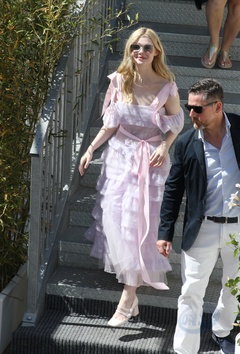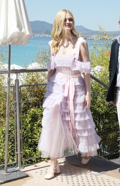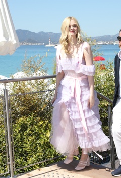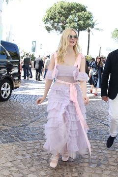 CANNES - Elle Fanning w jasnorozowej sukni z falbanami