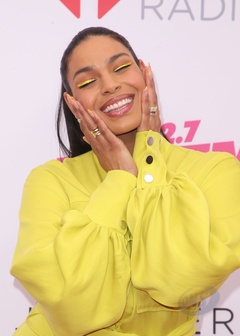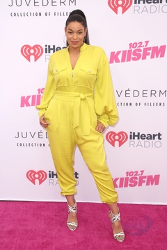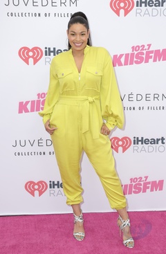 Jordin Sparks w zoltym kombinezonie na iHeartRadio Wango Tango