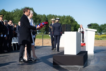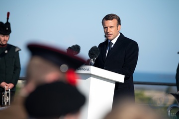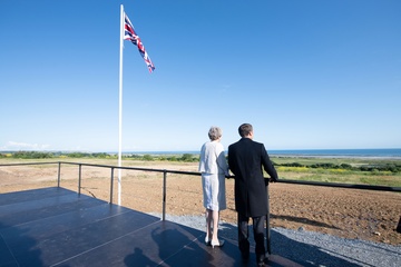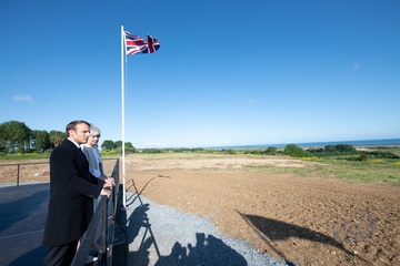 Macron i May na obchodach 75. rocznicy ladowania w Normandii