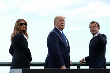 Trumpowie i Macronowie uczcili pamiec uczestnikow ladowania w Normandii