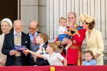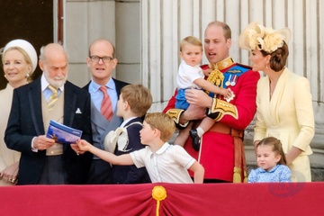 Ksiaze William, ksiezna Kate, Jerzy, Louis, ksiezniczka Charlotte, Ksiaze i Ksiezna Michael
