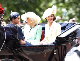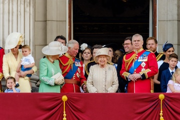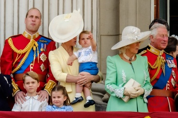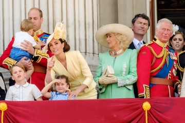 Ksiezna Kate, Louis, ksiezniczka Charlotte, Camilla, Karol, Anna, krolowa Elzbieta, Andrzej, Beatrice