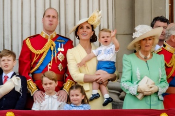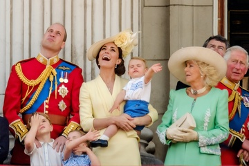 Ksiaze William, ksiezna Kate, Jerzy, Louis, ksiezniczka Charlotte, Camilla, Karol