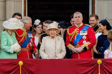 Ksiezna Camilla, Ksiaze Karol, ksiezniczka Anna, krolowa Elzbieta, Andrzej, Harry, Meghan