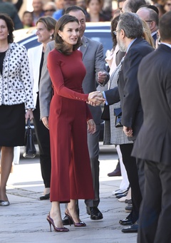 Krolowa Letizia - total look - na bordowo
