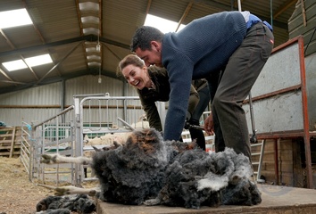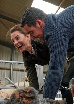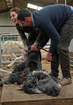 Ksiezna Kate i ksiaze William na farmie owiec