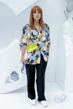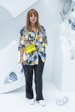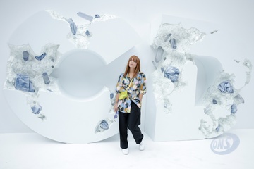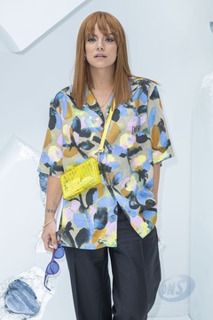 Lily Allen w rudych wlosach z grzywka na pokazie DIOR