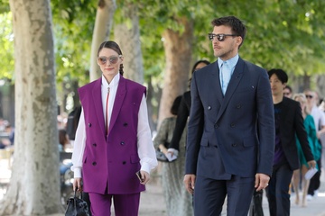 Olivia Palermo z mezem w drodze na pokaz Berluti