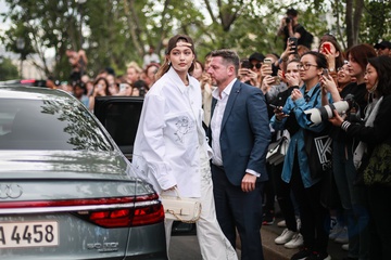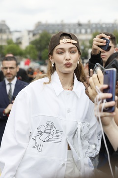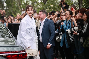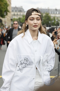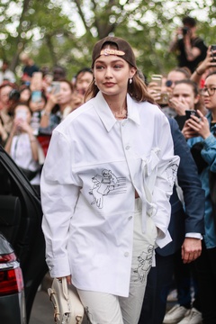 Gigi Hadid cala na bialo wraca z pokazu Louis Vuitton