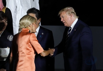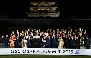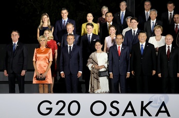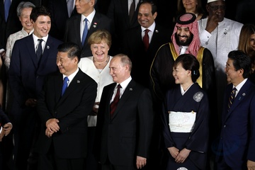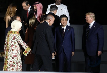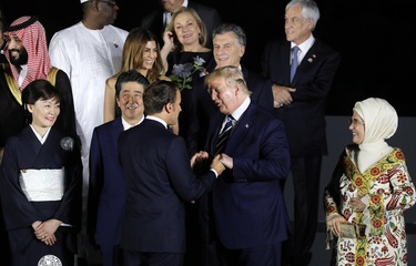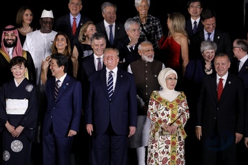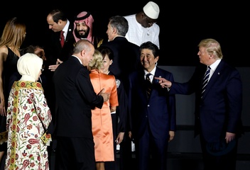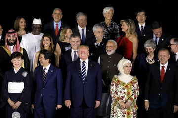 Ksiaze Mohammed ben Salmane, Mauricio Macri z zona Juliana Awada, Narendra Modi, Theresa May, Shinzo Abe z zona Akie, Donald Trump, Recep Tayyip Erdogan z zona Emime, Christine Lagarde