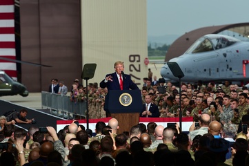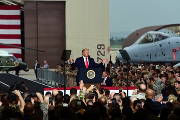 Trump z corka na spotkaniu z zolnierzami w Korei