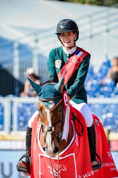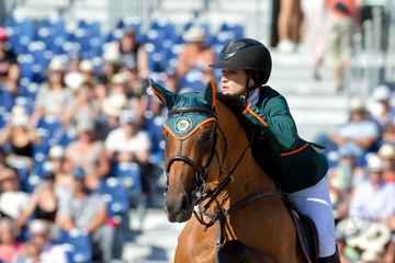 Jessica Springsteen na zawodach konnych w Paryzu